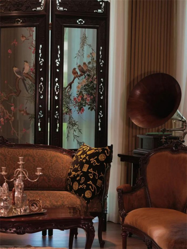 高达三米的苏绣花鸟屏风,红木浮雕贵妃椅,甚至一椅一案一青松,都是泰和园赠与来者的写意留白。