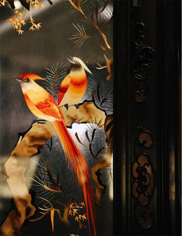 泰和园《苏绣花鸟屏风》与《红木浮雕贵妃椅》