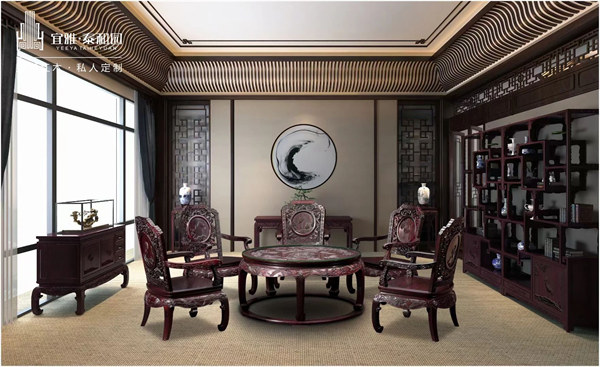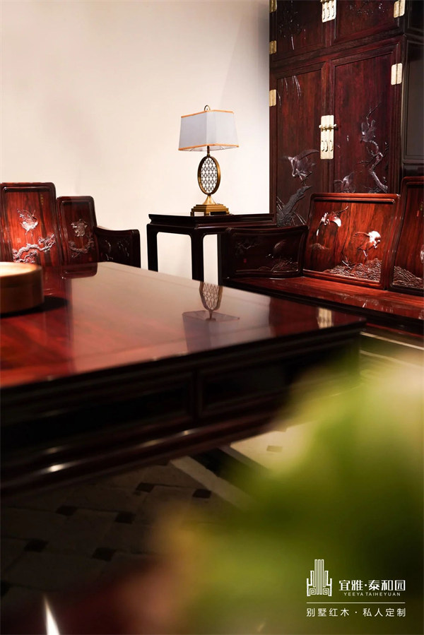 择良时,端坐于红木沙发之上,于旁边的茶几上搁置一碟瓜果,木香四溢,果香扑鼻,回归自然,回归本心,在宁静的空间中找回清爽平静的生活状态。