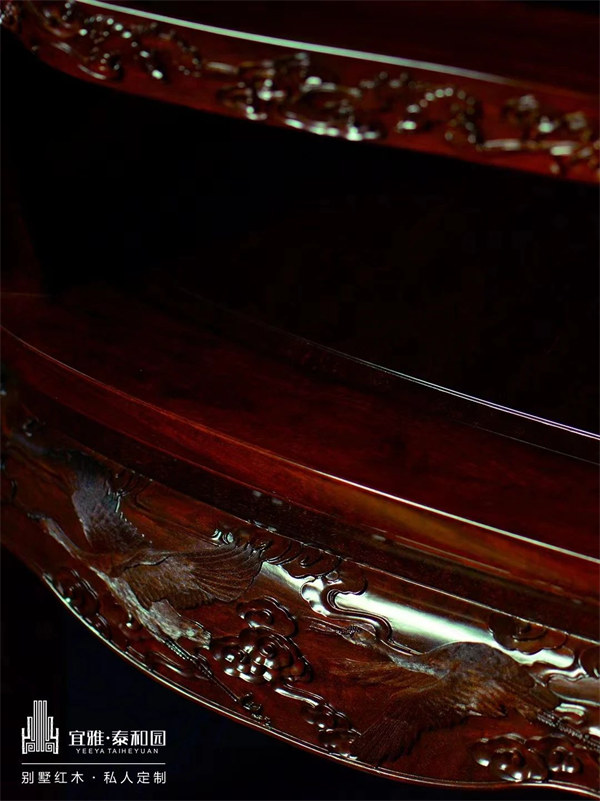 红木生凉,颜色稳重舒缓,手触摸红木,敦厚紧密的木质泛出温和的凉意。