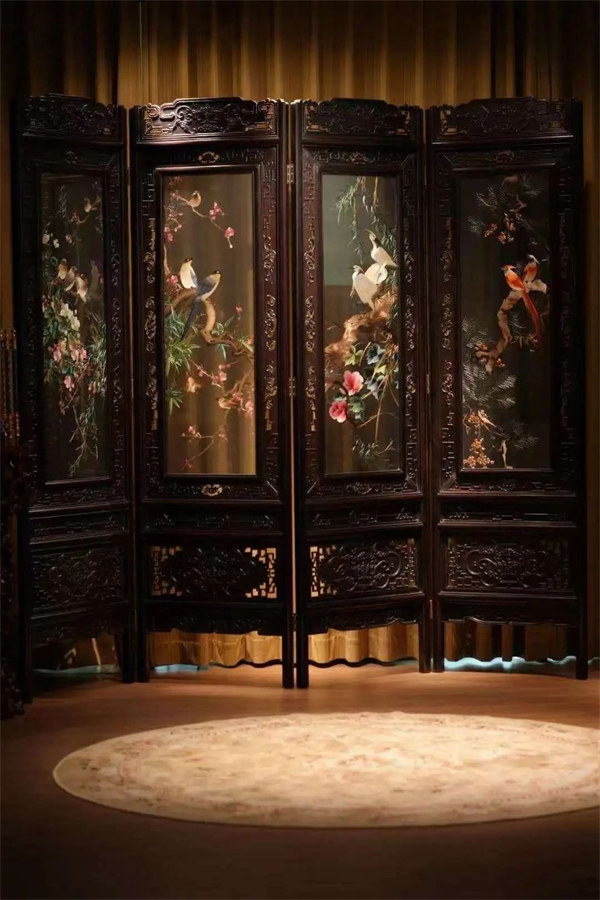花鸟 苏绣屏风