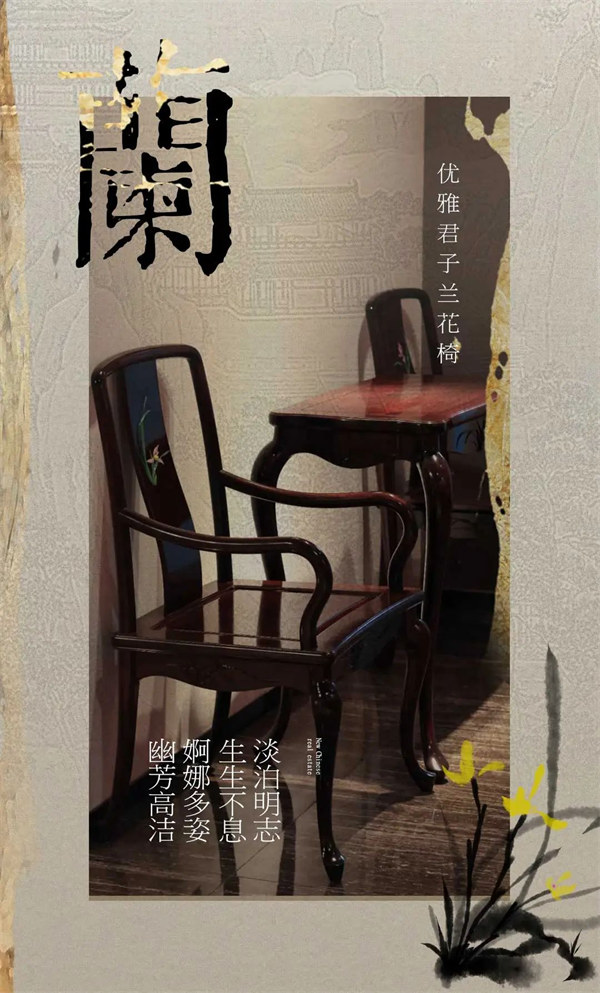 在喧嚣尘世寻一方静谧,兰花椅,以其幽芳高洁的姿态,静静诉说着“芝兰生幽谷,不以无人而不芳”的高雅意境。