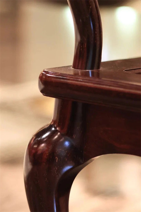 后腿与搭脑的弧度恰似弓满待发,前腿与S型扶手则形成一种内敛而又不失张力的拥抱,仿佛君子修道立德,不因外物而改其节操。