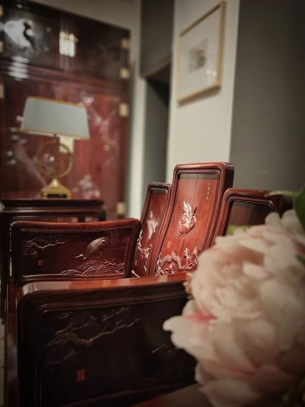 泰和园的作品融入了儒家文化和“天人合一”哲学,如《翎檀家具书房系列》《丝翎檀雕松鹤延年茶台》《当代君子梅兰竹菊》等,不仅符合当代审美,还兼顾家居舒适性,屡获殊荣,成为红木家具行业传承与创新的典范。