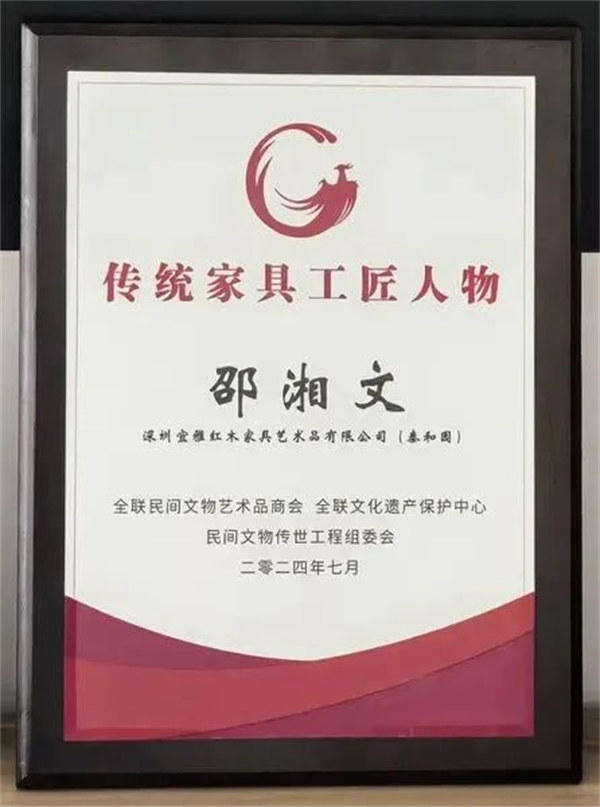 中国传统工艺大师、泰和园董事长邵湘文深情寄语:“步入2025,泰和园继续秉承‘只做有时代精神的当代艺术家具’的核心理念,深耕艺术生态,坚守品质基石,勇攀创新高峰。我们将进一步优化品牌管理体系,促进艺术与红木家居的深度融合,为艺术品牌产业链的深化与完善贡献力量。泰和园,愿与您一同见证艺术之美,共享生活之雅。”