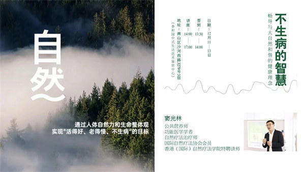 12月11-13日,我们特邀窦老师来泰和园给身边的亲朋好友讲《不生病的智慧》,本次讲座将传递给各位如何保持健康,如何"活得好,老的慢,不生病"的底层逻辑——就是要把生命看作一个整体,局部的问题要刨根问底找到源头,解决的时侯更是要有全局观。
