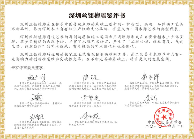 深圳丝翎檀雕”全国专家鉴评会+国家专利