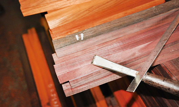 在确认样品过后,就会跟着客户指定的材质进行制作。首先是进行选料,选取的都是无白边的优质原材,而开料的时候更不是一次就完事,选料——截料——再次开料——刨平,单单是木材,就做了很多。