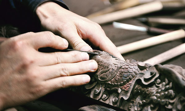 在私人定制过程中,木工是关键,也是最考验匠人手工与耐心的一个步骤,始终要求的是达标,近乎完美。雕刻的花纹是否生动、丝翎檀雕纹理是否精细、开榫是否无缝贴合……大到整体呈现,小到一根羽毛细节,都要精细。